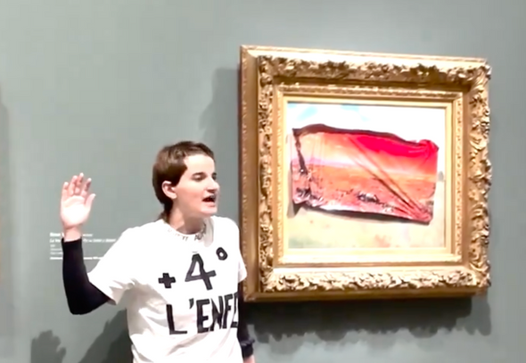 В парижском музее Орсе экоактивистка и участница ассоциации, выступающей против изменения климата Riposte Alimentaire, наклеила плакат на картину «Маки» Клода Моне. Об этом сообщает издание National Post.