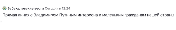 В Бабаюртовском районе Дагестана детей и сотрудников посадили смотреть прямую линию Владимира Путина. Видео с совместным просмотром пресс-конференции президента выложили на странице садика во «ВКонтакте». Также об этом написало местное издание «Бабаюртские вести», однако вскоре эти записи отовсюду удалили.