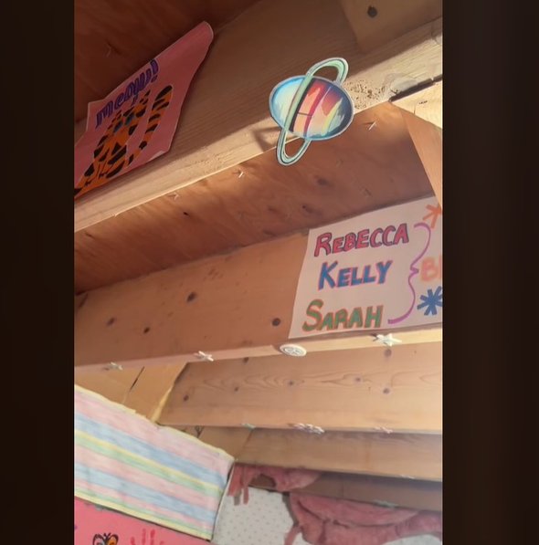 К одной из верхних балок был прибит листок бумаги с тремя девичьми именами: Ребекка, Келли и Сара. Девушка также показала, что помещение точно было предназначено для детей, так как взрослому человеку распрямиться и встать в полный рост там не получается.