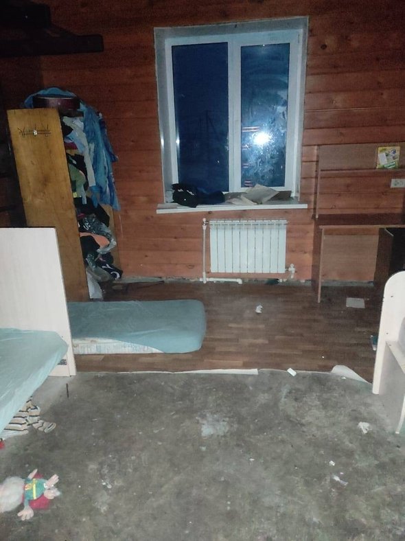 Постройка отапливается печью, которая установлена в пожароопасном помещении, где хранится много легковоспламеняющихся вещей. Живущие там дети не могли нормально помыться, потому что в доме нет водопровода и других условий. Помимо этого, полицейские не нашли нормальной еды, которой могли бы питаться четверо детей.