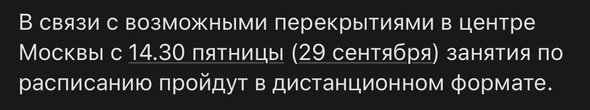 Об удаленке студентам сообщили вечером 26 сентября. В пятницу 29 сентября корпус на Моховой уйдет на дистант из-за запланированных перекрытий дорог в центре Москвы, сообщили студентам в администрации журфака. Причина — концерт на Красной площади в честь годовщины присоединения ДНР, ЛНР, Запорожской и Херсонской областей.