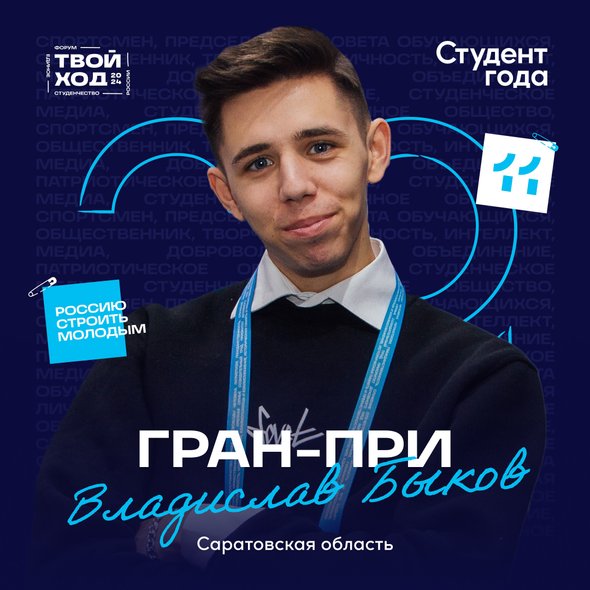Победителем российской национальной премии «Студент года» стал Владислав Быков из Саратовской области. Об этом сообщается на странице премии в ВК.