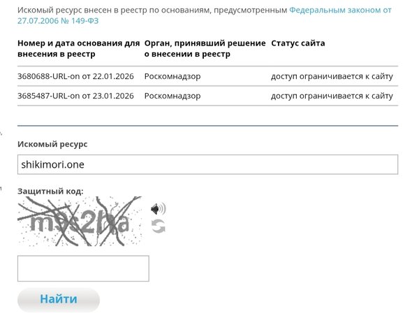 По данным реестра, shikimori.one был заблокирован еще 22 января, однако трудности с доступом у пользователей возникли только сейчас.