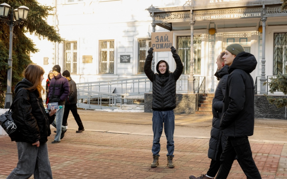 Нижегородские студенты устроили демографический флешмоб с плакатами «Зай, рожай!»