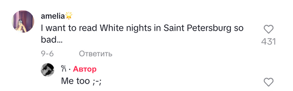 «Теперь и девчонки с BookTok читают Достоевского. Вот это поворот», — написал под виде в тиктоке один из комментаторов.