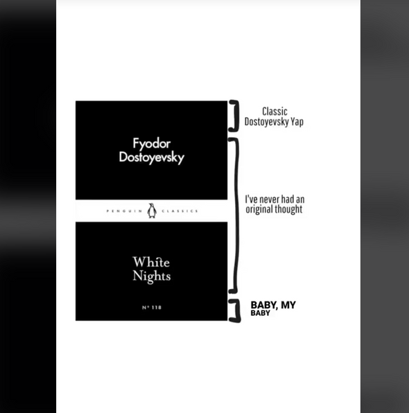 В соцсетях, посвященных обсуждению книг — «буктоке» и «букстаграме» — пользователи по всеми миру в течение всего 2024 года признаются в любви повести Федора Достоевского «Белые ночи», выпущенной в мягкой обложке издательством Penguin Classics, сообщает The Guardian.