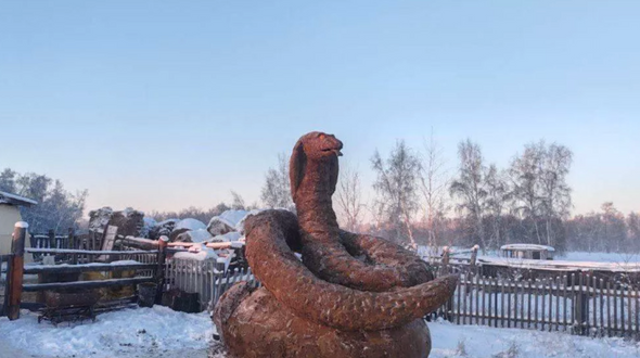 В якутском селе Уолба скульптор-самоучка Иван Боппосов продолжил региональную традицию и слепил символ года — Змею — из коровьего навоза. Об этом рассказал РИА Новости автор популярных скульптур, брат Ивана, Михаил Боппосов.