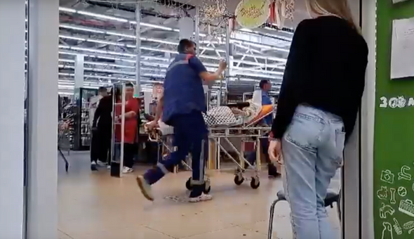 Очевидцы, находившиеся в магазине сняли на телефоны, как родившую ребенка девушку увозят мимо зоны касс супермаркета на каталке.