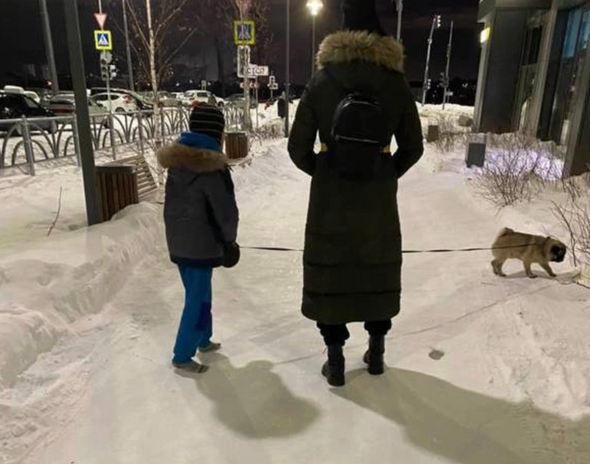 В Екатеринбурге плачущий босой мальчик выгуливал собаку в 20-градусный мороз. Мама шла рядом и ругала ребенка