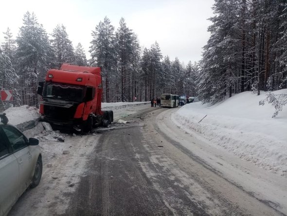 В Карелии автобус с 27 детьми из школы плавания олимпийского резерва столкнулся с грузовиком