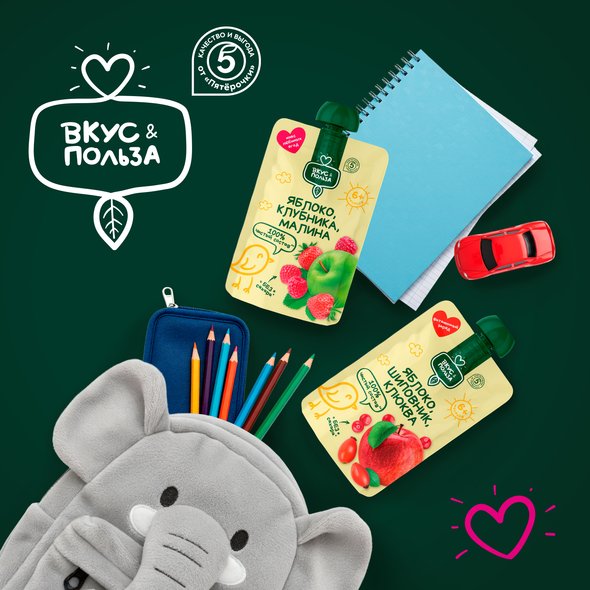 Торговая сеть «Пятерочка» объявляет о расширении ассортимента собственной торговой марки «Вкус & Польза» и запуске новой категории продуктов — детского фруктового пюре. Новинка станет полезным и удобным решением для мам, которые заботятся о здоровом и сбалансированном питании своих детей с самого раннего возраста.