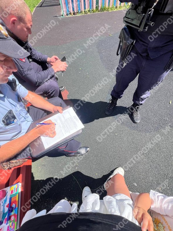 «Я решила включить камеру, так как начались угрозы. Далее он ударил меня по руке, дети испугались заплакали, но более того, когда он пошел собираться со своим дружком, я вызвала полицию и пошла на горку к испугавшимся плачущим детям. Этот урод побежал за мной, догнал прямо на горке, я успела только спустить детей вниз и он начал меня бить руками и ногами по голове и туловищу», — рассказала пострадавшая. На площадку также вызвали наряд ППС.