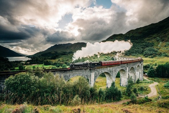 Речь идет о маршруте «Якобит», туристическом поезде с паровозной тягой, курсирующий по части линии Вест-Хайленд в Шотландии, который широко известен как «Хогвартс-экспресс». Именно этот состав появлялся на экране в фильмах франшизы о Гарри Поттере, а его маршрут проходит из Форт-Уильяма в Маллайг по живописному Северо-Шотландскому нагорью, включая знаменитый виадук Гленфиннан.