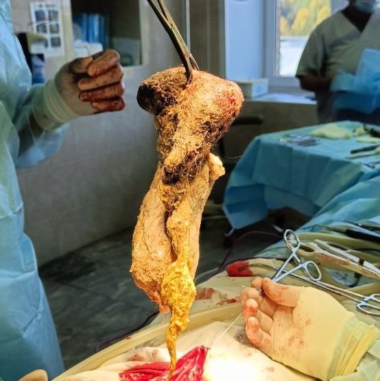 По словам врачей, за три дня до госпитализации у подростка возникала периодическая боль в животе, а затем тошнота и рвота. В экстренном порядке врачи хирургического отделения провели обследование. УЗИ органов брюшной полости и фиброгастроскопия помогли установить, что почти все пространство желудка пациентки занимает гигантский волосяной шар — трихобезар размером с дыню. В ходе лапаротомии и гастростомии инородное тело удалили.