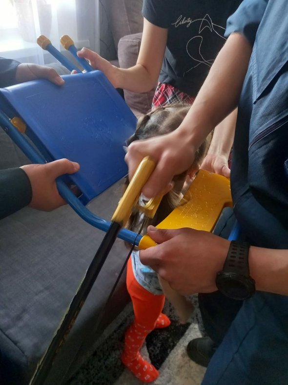 В Уфе 3-летней девочке, застрявшей головой в детском стульчике, понадобилась помощь спасателей
