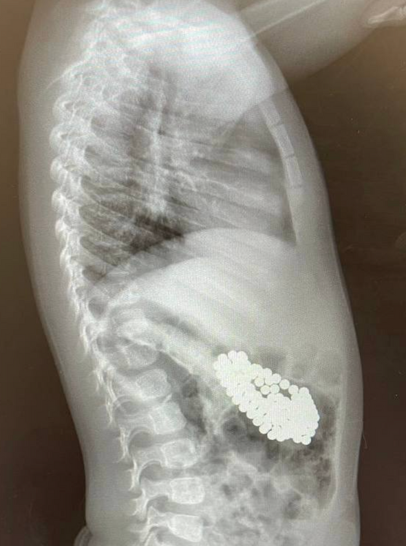 После эндоскопии врачей ждал неприятный сюрприз, так как на послеоперационном рентгене они обнаружили еще три магнита, которые невозможно было удалить с помощью эндоскопа. Ребенок, по всей видимости, глотал магниты в разное время, поэтому некоторые из них уже переместились в кишечник. Находясь там, они сцепились и притянули друг к другу желудок и кишечник. Извлечь опасные предметы можно было только хирургическим путем.