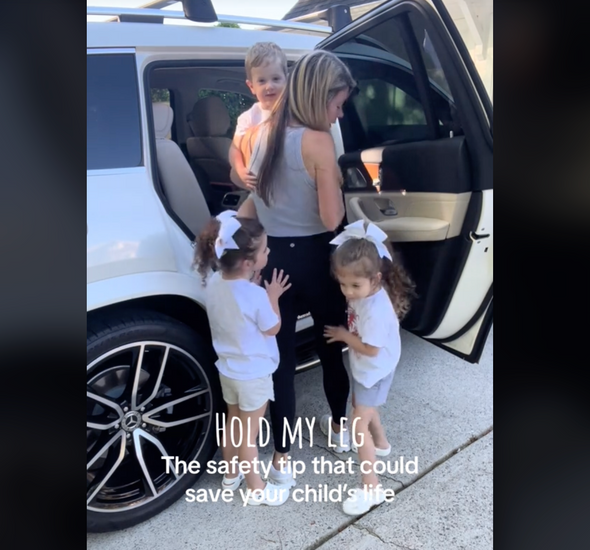 Кто-то посоветовал Лорен попросить детей цепляться за топ или рубашку, когда они первые выходят из машины и ждут, когда она вытащит младшего брата из автокресла, но на деле этот вариант оказался не очень удобным и не выглядел надежно. Тогда она придумала, что будет говорить дочерям обхватывать ее ноги и стоять так до тех пор, пока они все вместе не возьмутся за руки и не пойдут мимо машин.