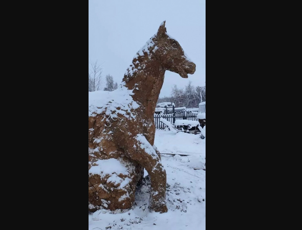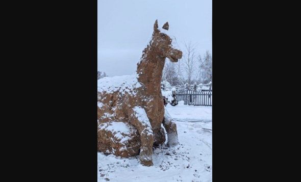 Якутский скульптор из-за нехватки сырья позже обычного слепил из навоза символ нового года — лошадь