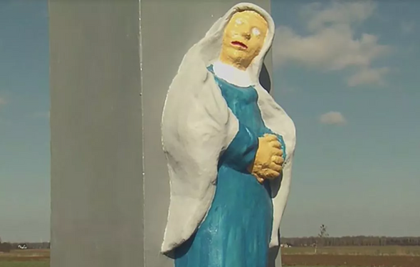 Жители небольшой деревни в Польше возмущены тем, что статуя Девы Марии, которой они чествовали более 200 лет, после неудачной реставрации стала напоминать персонажей популярного мультсериала. Статуя Девы Марии и Иисуса после реставрации приобрела странный вид: кажется, будто одна из фигур стоит в серых трусах, а другая напоминает желтушного персонажа из «Симпсонов».