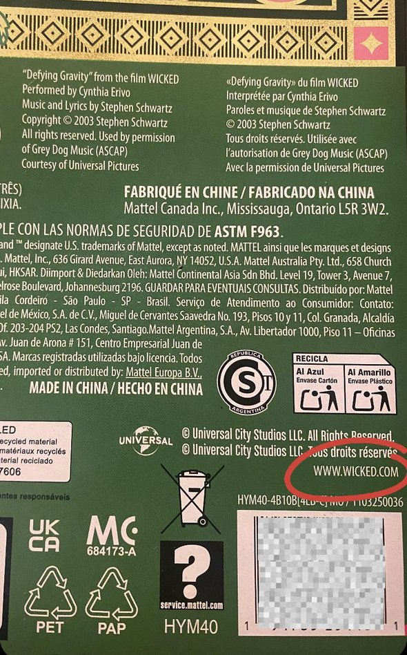 Компания Mattel, которая производит кукол Барби, попала в скандал из-за коллекционной серии, посвященной экранизации мюзикла «Злая» (Wicked) с певицей Арианой Гранде. На коробках игрушек оказался URL-адрес порносайта. Об этом пишет The Daily Beast.