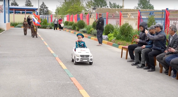 В детском саду Дагестана для воспитанников и местных жителей провели парад Победы. При этом шествие возглавил мальчик-«генерал» на игрушечном белом мерседесе. Видеоотчет о мероприятии появился на странице учреждения в ВК.
