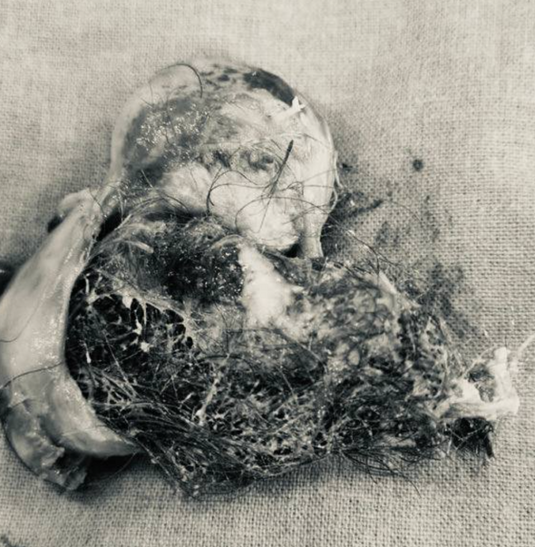 «Из правого яичника у пациентки удалена тератома диаметром 8 см, содержимым ее, как видно на фото, являлись волосы, зачатки костей черепа, жир. Операции такого рода являются высокотехнологичными, ведь удаление таких опухолей у пациенток репродуктивного возраста должно происходить с максимальным сохранением здоровой ткани яичника. Это требует определенной, очень аккуратной техники оперативного вмешательства», — рассказал об операции главврач роддома Александр Скобенников.