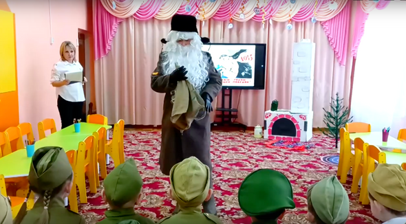 В Кемеровской области для воспитанников сада в Калтанском городском округе провели тематический новогодний утренник под названием «Новый года на фронте, в окопах и в тылу». Дети рисовали открытки для партизанов, смотрели сценки с замерзающими в окопах и за линией фронта людьми, а потом Дед Мороз в шинели угостил их кусочками хлеба с сахаром-рафинадом. Отчет о мероприятии появился на странице учреждения во ВКонтакте.