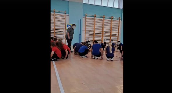 В Тюменской области учительница физкультуры в школе Ярковского муниципального района пнула ногой в спину сидящего на корточках ученика на занятии. Произошедшее снял на телефон кто-то из находящихся в спортзале детей, а видео появились в паблике «ТЯ (Типичное Ярково) Тюменская область».