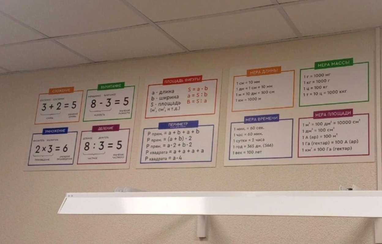 На методические плакаты, размещенные в одном из кабинетов школы, обратили внимание дети и родители учеников, которые назвали пособия «математикой курильщика» и «плакатами, купленными на AliExpress» из‑за явных ошибок в простейших арифметических примерах. На плакатах, например, 1 дециметр указан как равный 1 сантиметру, в сутках значилось всего 2 часа, а один из арифметических примеров выглядел как «8: 3 = 5».