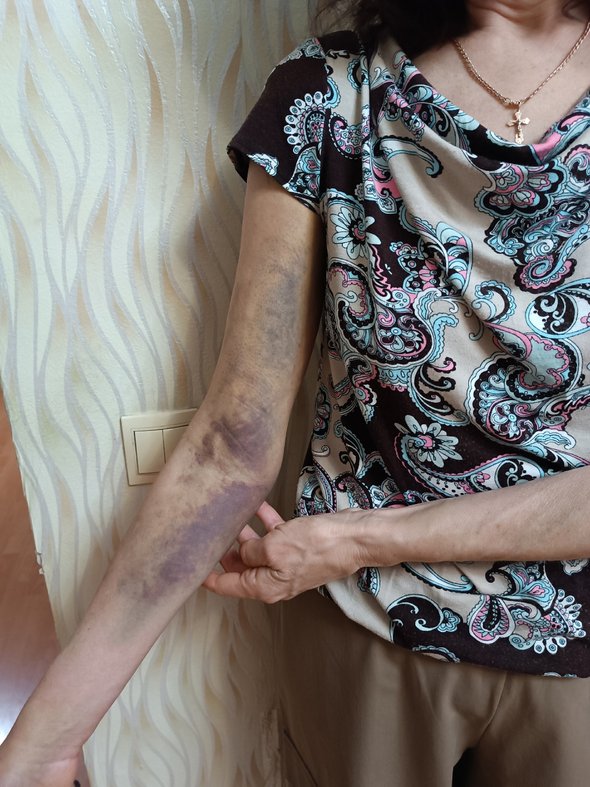 Со слов Валентины Волковой, чтобы во всем разобраться, полицейским понадобилось примерно полчаса. После этого она обратилась к врачам, а в больнице у нее диагностированы перелом плеча, разрыв сухожилия и гематомы на руке.