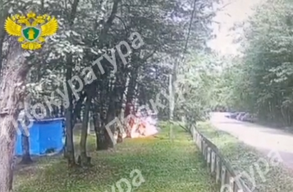 На видеозаписи видно, что в лесопарковой зоне под деревом стоит группа подростков. В какой-то момент у них что-то взрывается и группа разбегается в разные стороны от вспыхнувшего огня.