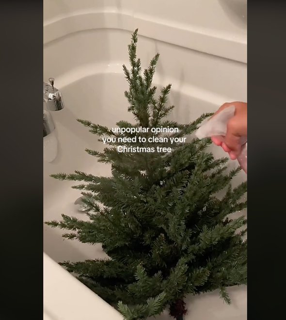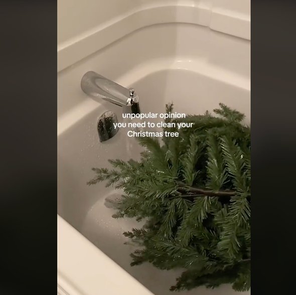 Дело в том, что девушка показала, как готовит свою искусственную елку перед праздниками. Она разбирает ее на сегменты, по очереди кладет их в ванну, наполненную мылом, потом брызгает еще одним чистящим средством и затем тщательно промывает.