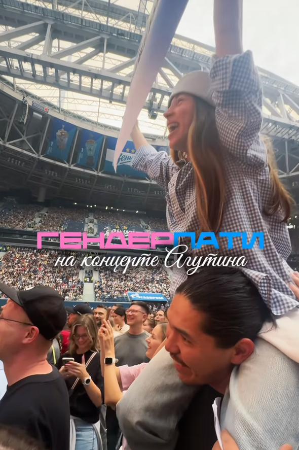 На видео, которое у себя в инстаграме* выложила беременная блогерга Ника Саттарова, они с мужем стоят в толпе зрителей на концерте в петербургской «Газпром Арене». В перерыве между песнями девушка забирается на плечи к мужу с плакатом «Дядя Леня, помоги узнать пол ребенка».