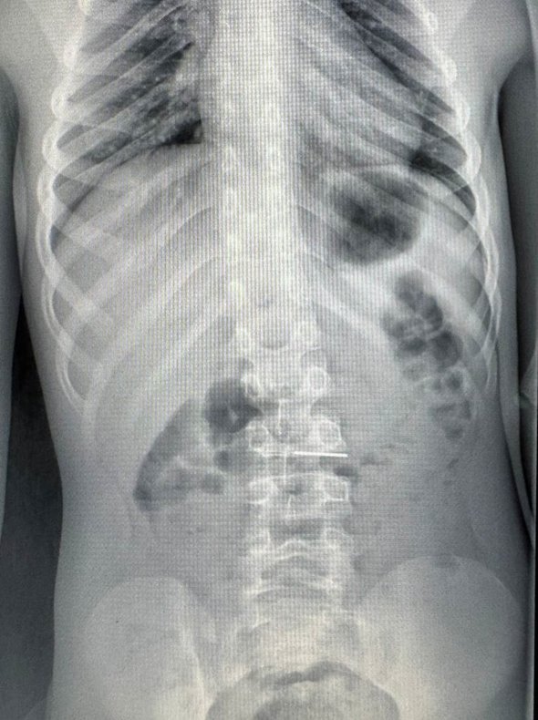 По словам медиков, дома мальчик пожаловался родителям на сильные боли в животе, тогда отец повез сына в больницу. Рентген и КТ показали наличие в теле инородного предмета, похожего на иглу. Результаты подтвердили наличие иголки в верхних отделах ЖКТ. Игла зафиксировалась острым концом в слизистой оболочке двенадцатиперстной кишки. Мальчику выполнили экстренную эндоскопическую операцию.