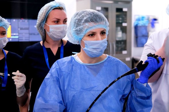 С помощью биопсийных щипцов врачи-эндоскописты аккуратно извлекли инородное тело из слизистой оболочки и переместили его в желудок, чтобы избежать повреждения окружающих тканей. После этого с помощью эндоскопического инструмента «Крокодил» захватили иголку за «тупую» часть и полностью извлекли.