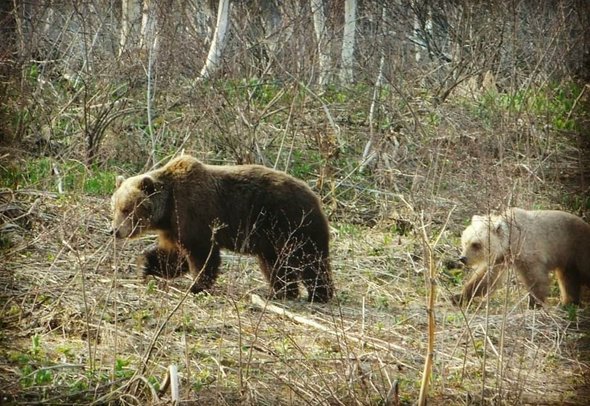 В заповеднике на Камчатке в семье бурых медведей появился белый медвежонок