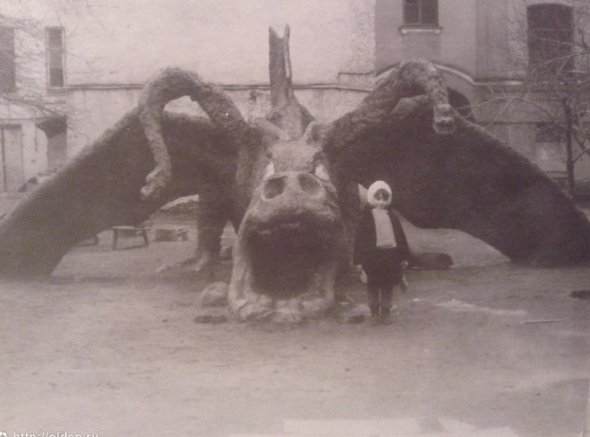 Детскую площадку «Дракон» создал ленинградский художникВладимир Трубаков в 1980-е годы. Это сказочное чудовище сделано из бетона на стальном каркасе и достигает около семи метров в длину. Скульптуру уже пытались восстанавливать и в начале 2000-х художник Алексей Ган воссоздал левую голову, а затем Стас Багс во время ежегодной акции «День Тома Сойера» подкрасил дракону глаза и пасть.
