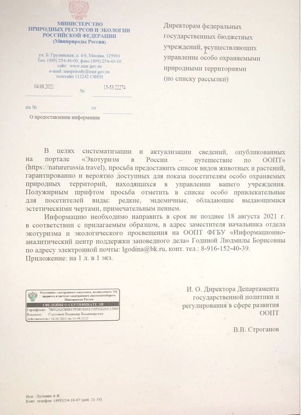 Минприроды обратилось к главам особо охраняемых территорий составить для портала «Экотуризм в России» списки растений и животных, «особо привлекательных для посетителей» и «обладающих выдающимися эстетическими чертами». На документ обратило внимание издание «Подъем».