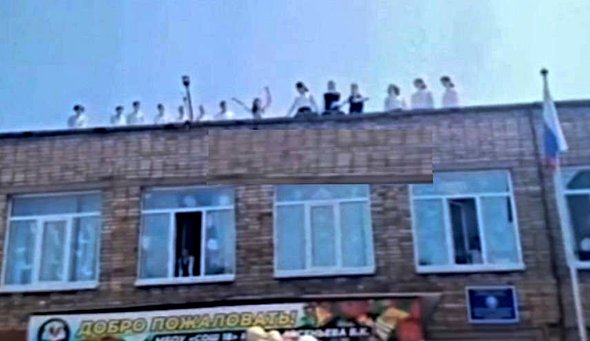 Во Владивостоке ученики одной из школ города во время торжественной линейки в честь окончания учебного года поднялись на незащищенную крышу учебного заведения, где спели и станцевали. Как сообщает Primamedia.ru, во время выступления на опасный флешмоб никто не отреагировал, а линейка шла своим чередом.