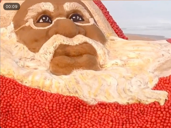Скульптор из Индии создал необычного Санта-Клауса. Он из песка и помидоров