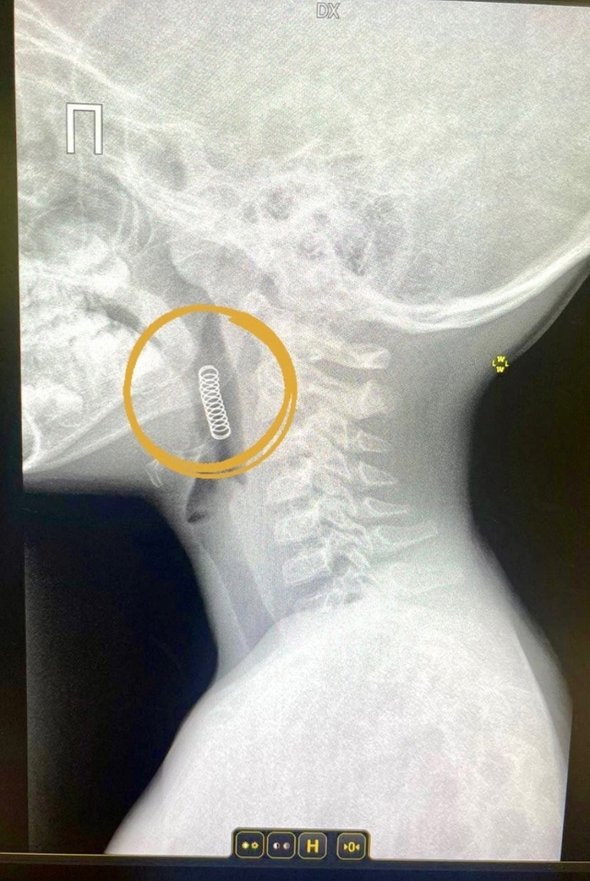 Мальчика с жалобами на дискомфорт в горле доставили в областную больницу № 4 в Ишиме. Родители рассказали, что сын случайно проглотил пружинку, отскочившую во время игры. Медики установили, что инородный предмет попал в глотку и застрял между надгортанником и небной миндалиной.