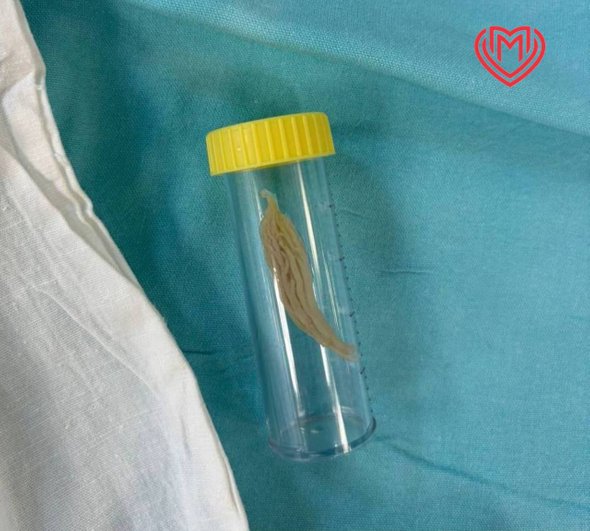 По данным видеобронхоскопии в дистальном отделе левого главного бронха обнаружили инородное тело продолговатой формы размером 4×1 см, которое оказалось куском мяса. Его извлекли при помощи аспирационной тяги, бронхи обработали, и ребенок смог свободно дышать.