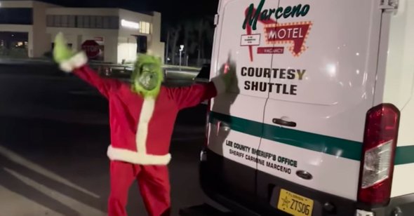 На кадрах, снятых одним из полицейских, видно, как Хадсон с опущенной головой уводят в фургон шерифа. Рядом появляется человек в костюме Гринча — персонажа знаменитого рождественского фильма. По словам одного из полицейских, такая акция показывает, как все в округе осуждают Хадсон за ее поступок. В посте, сообщающем об аресте женщины, содержится еще несколько отсылок на знаменитый рождественский фильм.