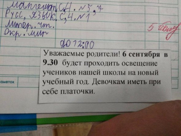 По словам преподавателей, посетить молебен можно было по желанию. Пользователь социальной сети, который отправил фотографию дневника сына, в которой учитель оставил заметку с приглашением на молебен. В ней отмечается, что девочки должны взять платки в этот день.