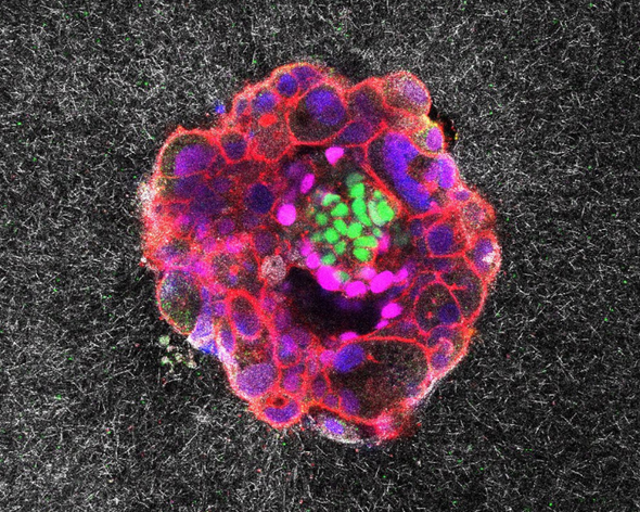 Сравнив имплантацию у человека и мышей, ученые обнаружили принципиальные различия. Если у мышей эмбрион лишь прикрепляется к поверхности, то у человека он полностью погружается в ткань матки и растет, начиная изнутри. Более того, эмбрион выделяет ферменты, разрушающие окружающие ткани, и при этом тянет их на себя, фактически «перестраивая» матрицу.