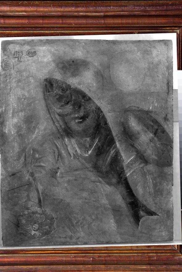 По словам основателя галереи Владимира Березовского, после этого работу временно сняли с экспозиции и передали на исследование экспертам. Рентген подтвердил, что под портретом девочки скрыт полноценный натюрморт с рыбой и овощами.