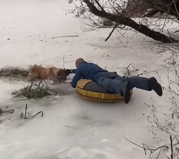 В Орле сотрудники МЧС на взятой у детей ватрушке спасли провалившуюся под лед собаку