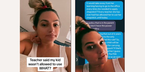 Джейми Кек в своем аккаунте с ником @realitykeck выложила скриншоты переписки с учительницей, запретившей девочке, у которой часто обветриваются губы, пользоваться гигиенической помадой. По словам мамы, сначала она попыталась вежливо узнать, в чем проблеме. Тогда учительница стала ссылаться на свод правил школы, в котором прописан запрет на принесенные в школу лекарства.