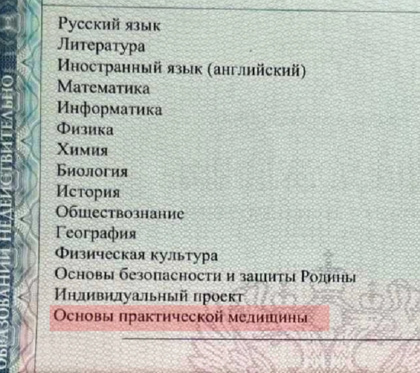 В Екатеринбурге 23 выпускника гимназии № 35 получили аттестаты с ошибкой. Как сообщает Е1, школьники сами обнаружили опечатку — в документе вместо слова «медицины» было напечатано «Основы практической медищины».