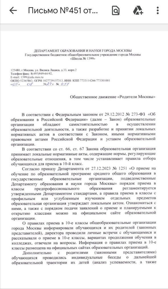 Общественное движение «Родители Москвы» сообщило в своем тг-канале, что получило ответ из столичного департамента образования на жалобу из-за массовых отказов школ переводить детей, сдавших ОГЭ на тройки в десятый класс. По словам активистов, такая проблема возникала у подростков и ранее, но в этом году отказы в переводе в десятые классы на основании локальных актов и агитация за учебу в колледже носят повсеместный характер по всей стране, в том числе и в Москве.